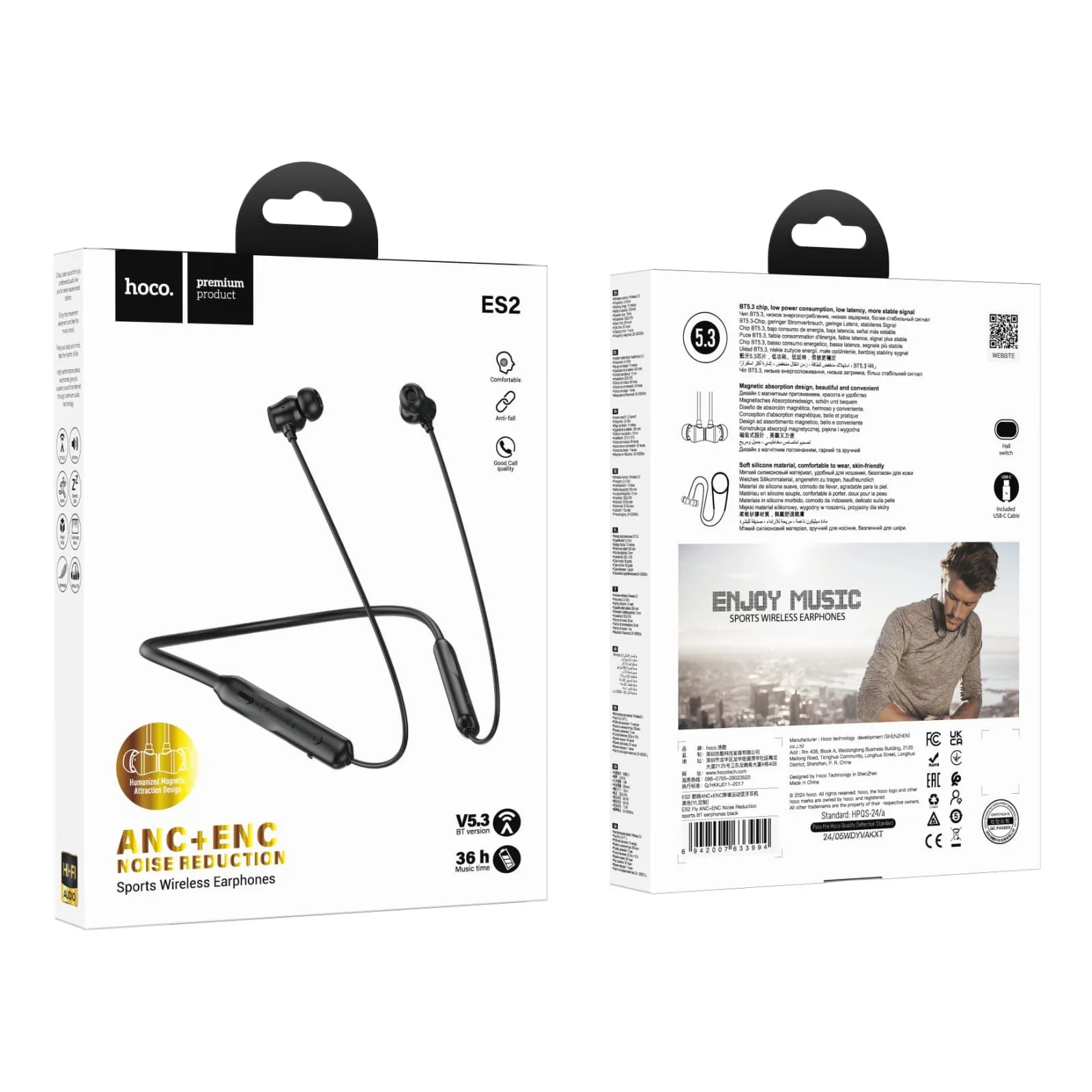 The Hoco ES2 neckband is powered by the Jerry JL7006F8 V5.3 chip solution, delivering a smooth and powerful listening experience. The battery capacity is an impressive 300mAh, providing up to 36 hours of music play time and 28 hours of talk time. Whether you’re listening to music or on long calls, this neckband earphones set has you covered with its exceptional performance.