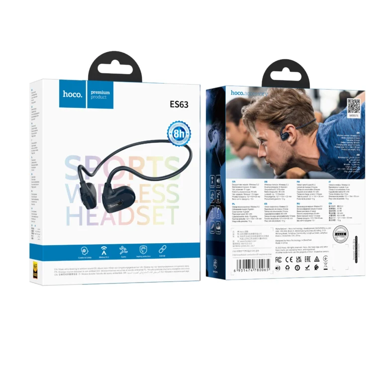 Using the Hoco ES63 Graceful Air Conduction BT Earphones is straightforward and convenient. Pair the earphones with your device via Bluetooth to enjoy wireless freedom. The multifunction key allows you to control your music and calls effortlessly, while the bilingual prompt tone support ensures easy operation for users around the world. The lightweight design and long battery life make these earphones perfect for enhancing your audio experience, whether you’re on the go or at home.