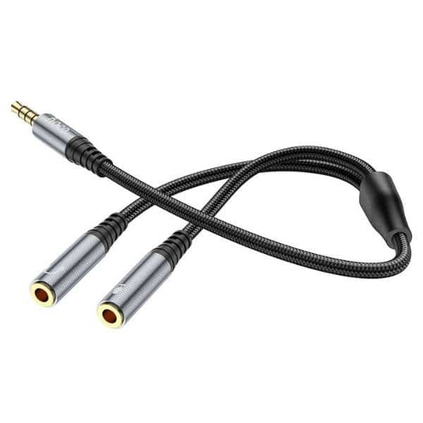Greater audio sessions can be awesome when you have the UPA21 2-in-1 audio adapter from Hoco. Weighing a mere 10 grams, the Hoco UPA21 Audio Adapter is an amazing portable audio accessory. Crafted with premium Aluminum Alloy, High-Strength Nylon Braid, and Enameled Copper, it exudes durability. The 25cm splitter cable, featuring a 3.5mm male that gracefully splits into two separate 3.5mm female interfaces, proves versatile for various audio connections. Supporting both microphone and headphone functionalities, this adapter ensures a seamless audio experience. Its tangle-free design, coupled with a plug & play mechanism, adds a touch of convenience. Dive into elevating music sessions from the HiFi audio output support, providing richer listening experience. Ideal for travelers, as it comes from a lightweight build makes it a perfect on-the-go companion.
